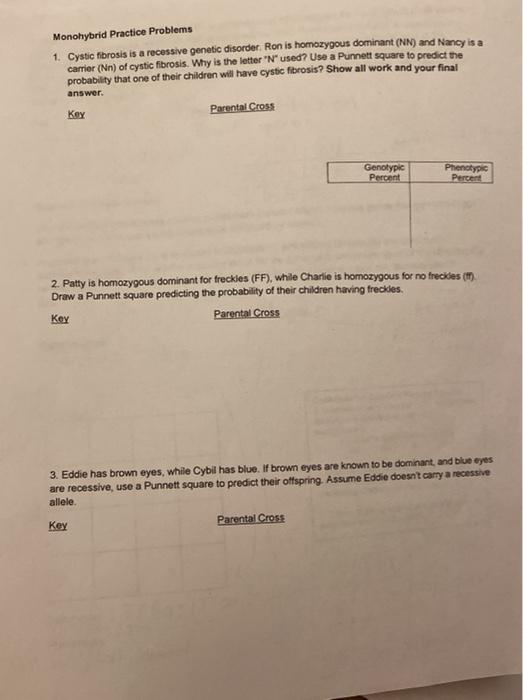 To help students remember the answers, the monohybrid cross problems 2 worksheet comes with answer keys monohybrid cross answer key. Monohybrid practice problems show punnett square, give genotype and phenotype for each on your own paper!